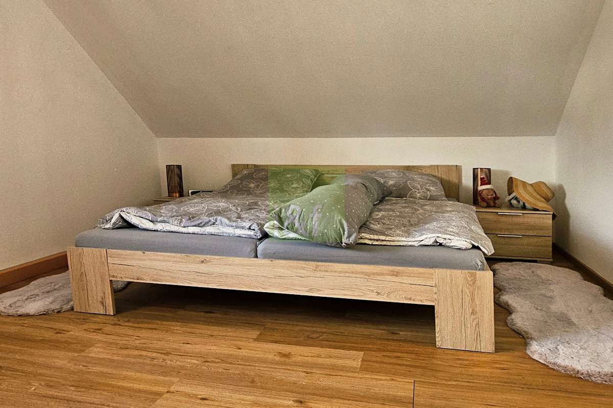 Das Schlafzimmer bietet genügend Platz für gemütliche Ruhephasen, während das halbe Zimmer flexibel nutzbar ist – zum Beispiel als Homeoffice, begehbarer Kleiderschrank oder ganz nach Ihren individuellen Bedürfnissen.